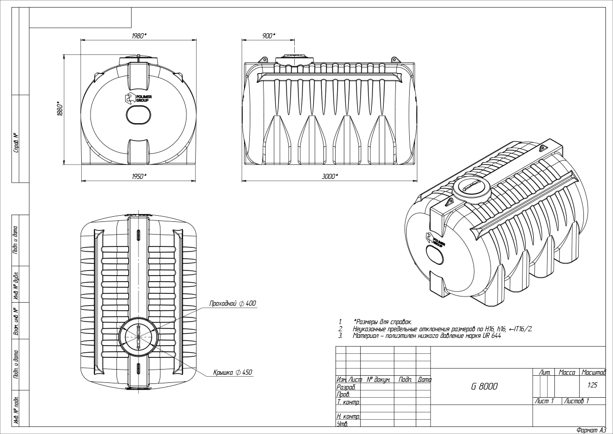 Ёмкость G 8000 литров изготавливается из пищевого полиэтилена методом ротационного формования. Материал не вступает в реакцию с содержимым, устойчив к УФ-излучению и не подвержен коррозии, что делает её универсальным решением для самых разных задач хранения и транспортировки.