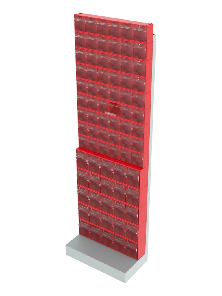 Стойка напольная Стелла-техник 405-00-09-05 (610х325х1850) представляет собой удобную систему хранения на основе откидных коробов. Стойка подойдет для выставочных залов, магазинов, офисов, складов. Комплектация: Рама FOX (610х325х1850) V405 напольная односторонняя с основанием - 1 шт.; Короб откидной Стелла-техник F-600-6 , 600х96х112мм, 6 ячеек, красный, прозрачный – 9 шт. Короб откидной Стелла-техник F-600-5 , 600х140х168мм, 5 ячеек, красный, прозрачный - 5 шт.; Упаковка. Преимущества: Металлическое основание; Значительная устойчивость; Хорошая вместимость; Длительный срок службы.