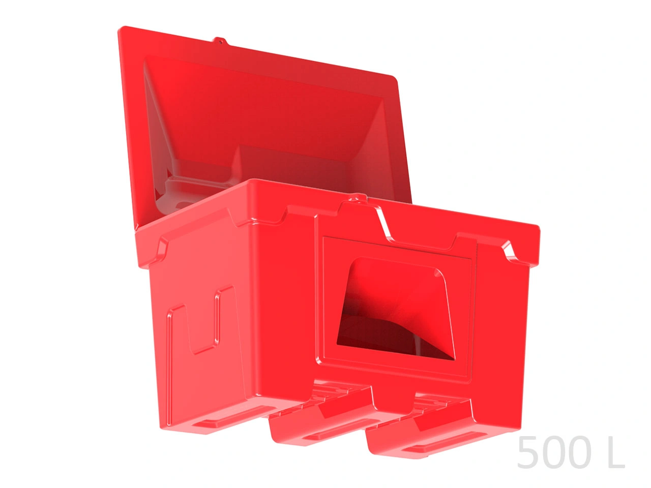 Объем контейнера для песка 500 л. Предназначен для хранения песка, применяемого для тушения пожаров на заправочных станциях. Изготовлен из полиэтилена методом ротоформования, что придает особую прочность.